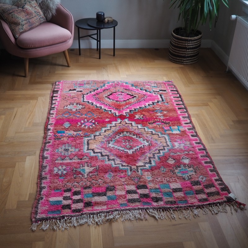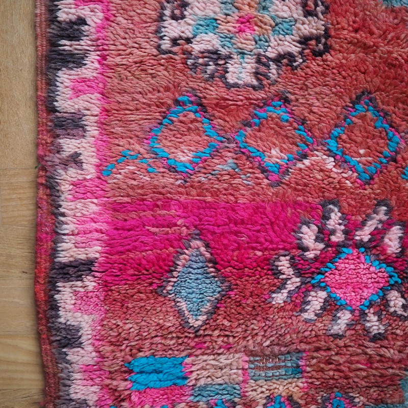 håndlavet vintage Boujad tæppe knyttet i 100% uld