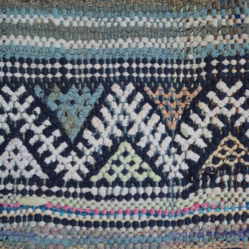 vintage (30+ år) tæppe håndlavet af blandede materialer