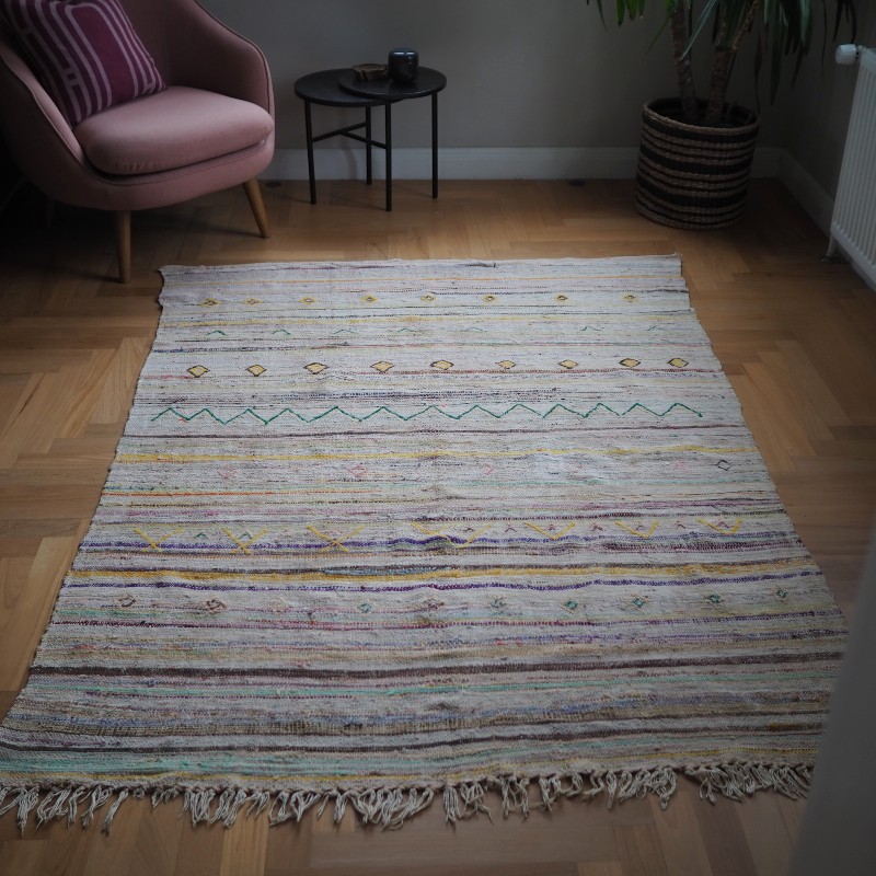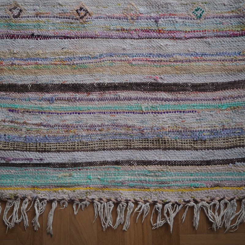 vintage tæppe håndlavet af bomuld og blandede materialer