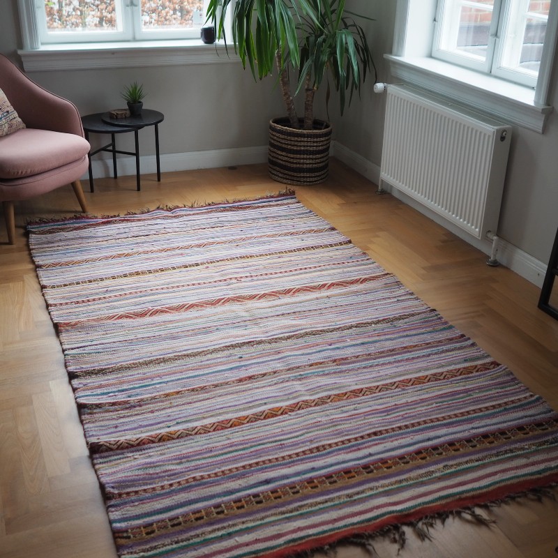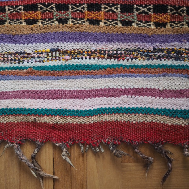 vintage tæppe håndlavet af bomuld og blandede materialer