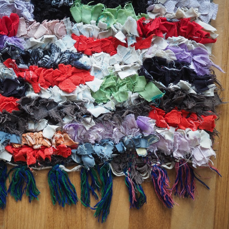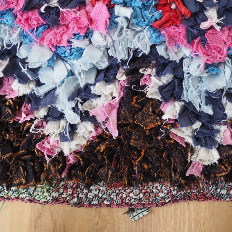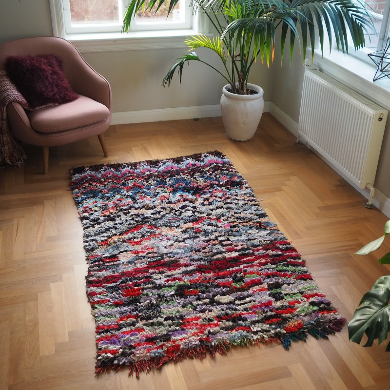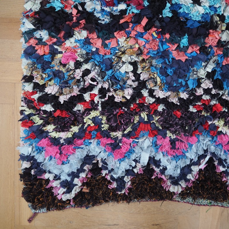 vintage marokkansk boucherouite tæppe håndlavet af blandede materialer
