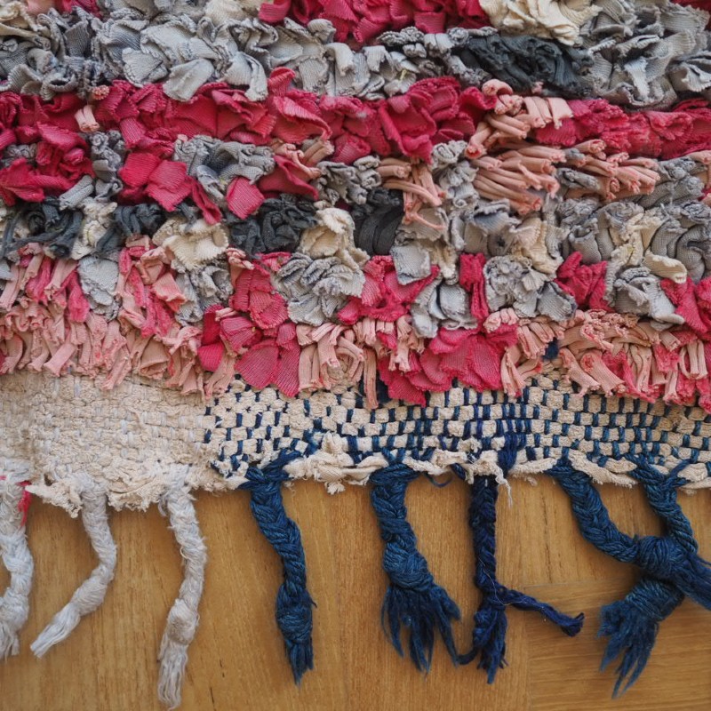 vintage tæppe håndlavet af blandede materialer