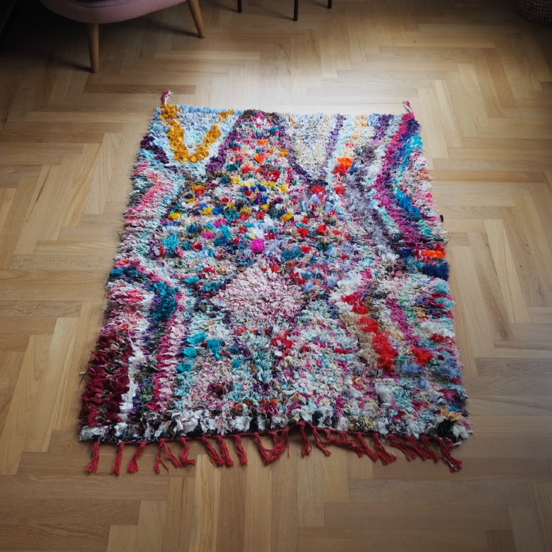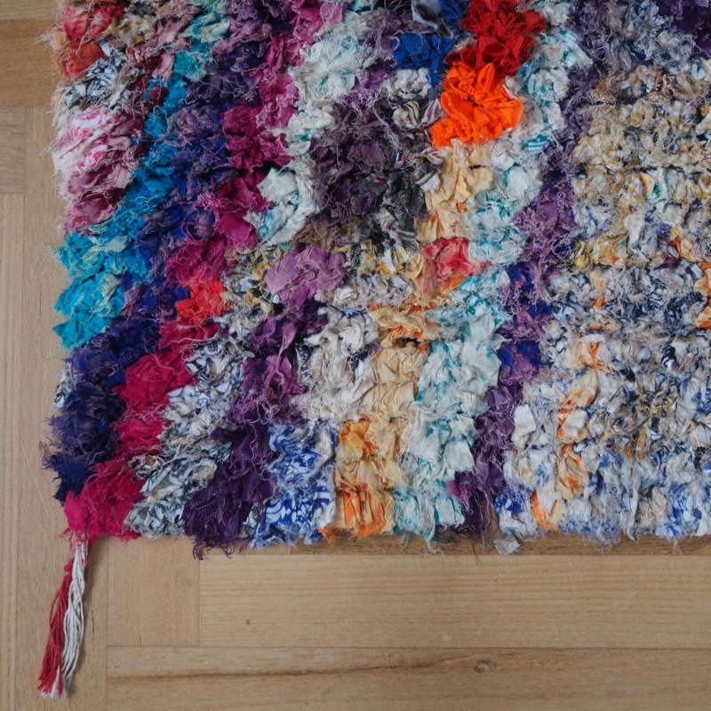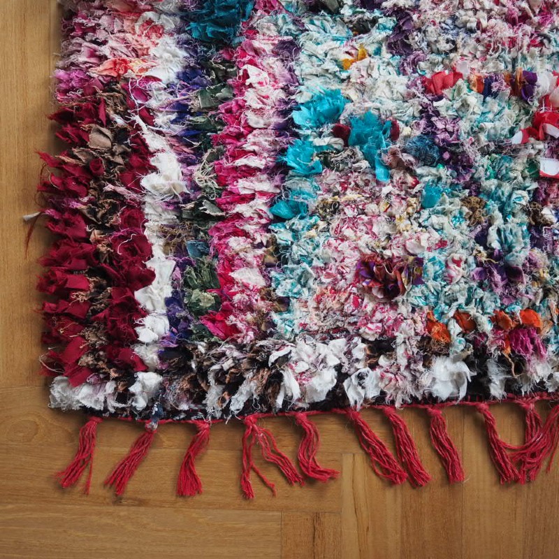 nyt marokkansk boucherouite tæppe håndlavet i blandede materialer