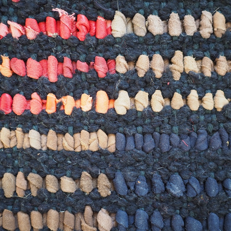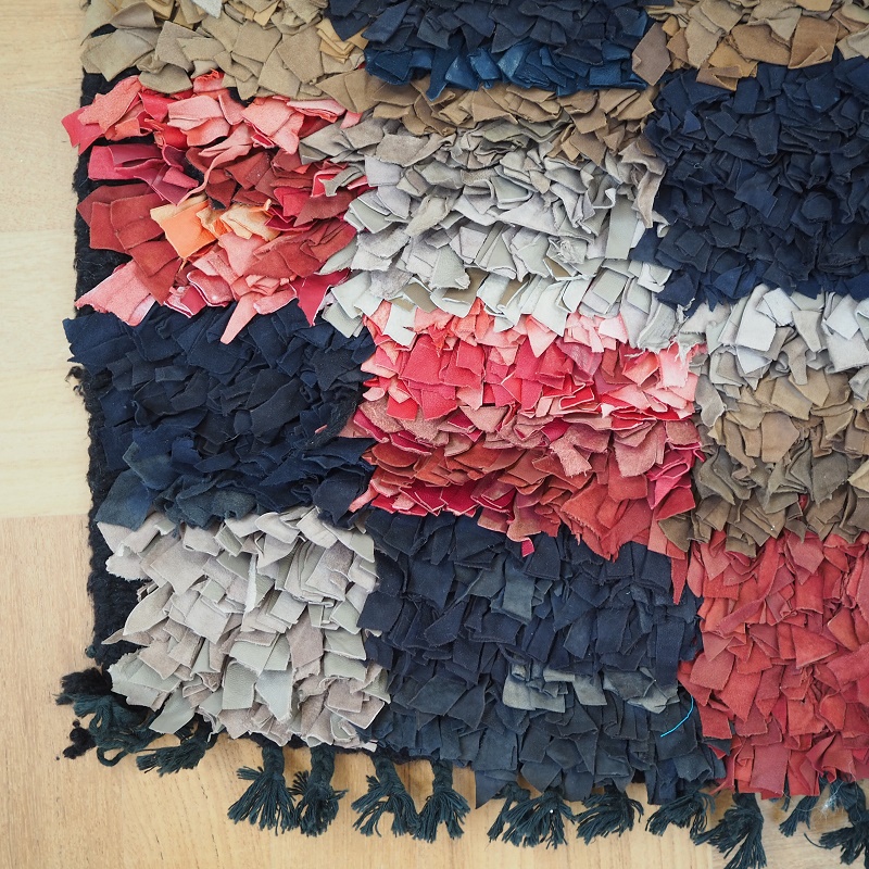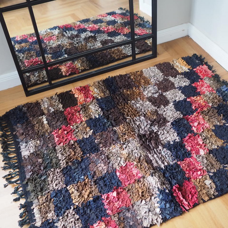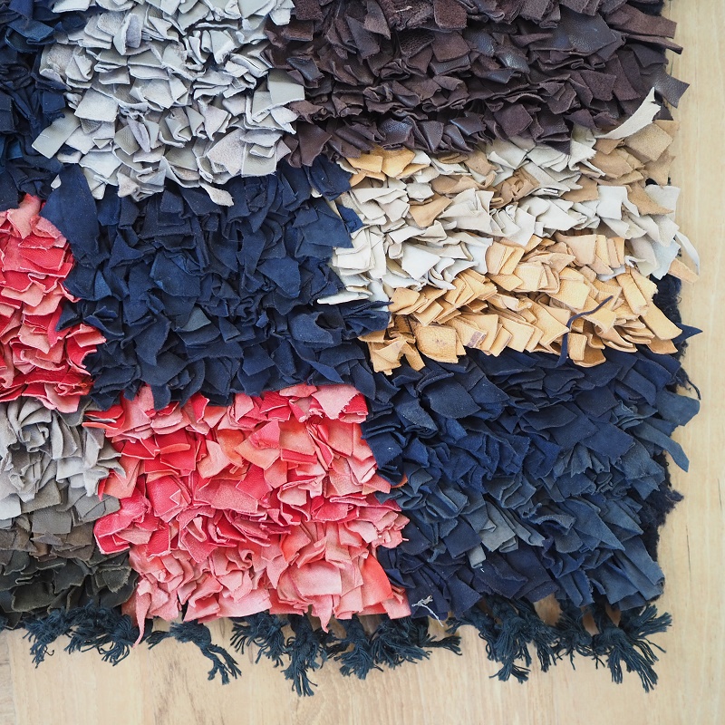 nyt tæppe håndlavet af læder, uld og bomuld