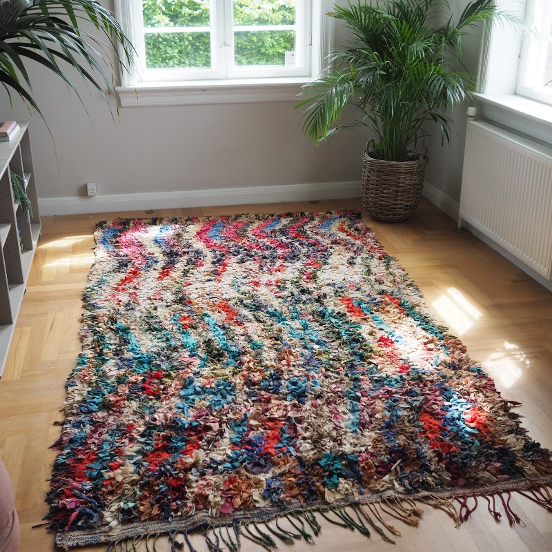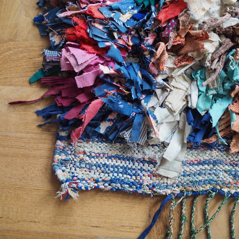 vintage (15/20 år) tæppe håndlavet af blandede materialer